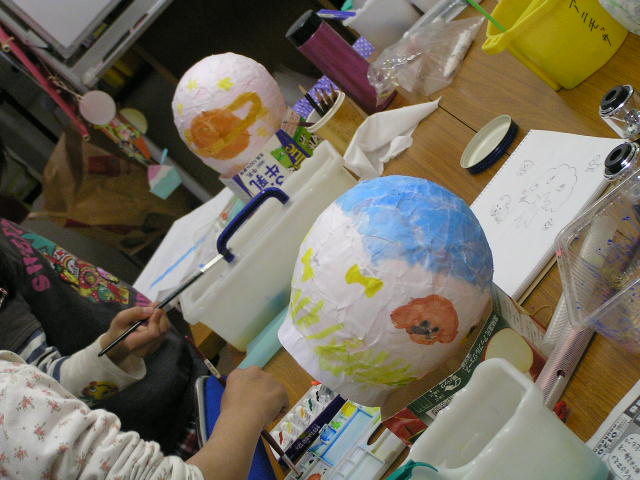 床に座り込んで、ハンドペインティングで絵を描いたり・・・