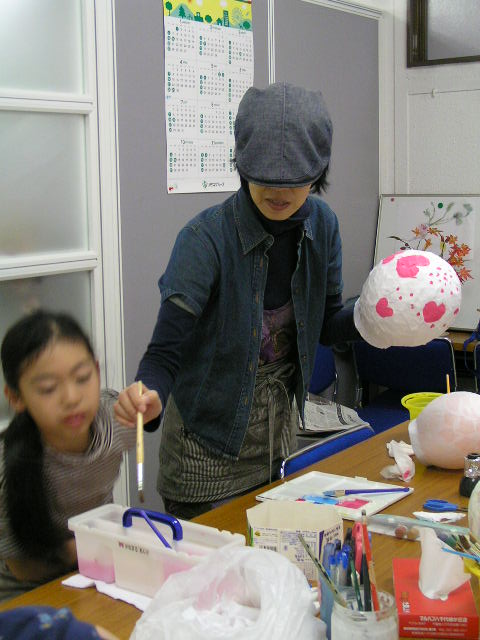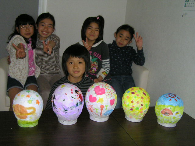 さて、今日は前回作った卵のカラのようなシェードの下の部分に紙の帯を貼りつけて、土台が丈夫になるようにしました。