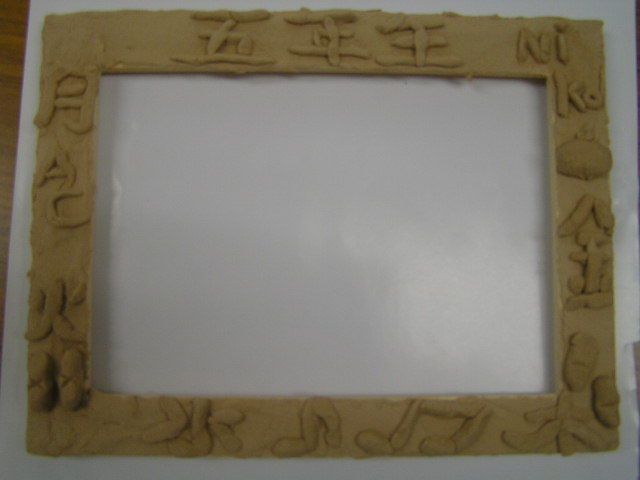 そして、フォトフレームの額に粘土を貼りつけていって・・・